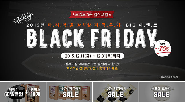 홈베이킹 전문 기업 ㈜브레드가든(대표 이영진)은 한 해를 마무리하는 연말 시즌을 맞아 홈베이킹 제품을 최대 70%까지 할인하는 브레드가든 포스트 블랙프라이데이 기획전을 진행한다.