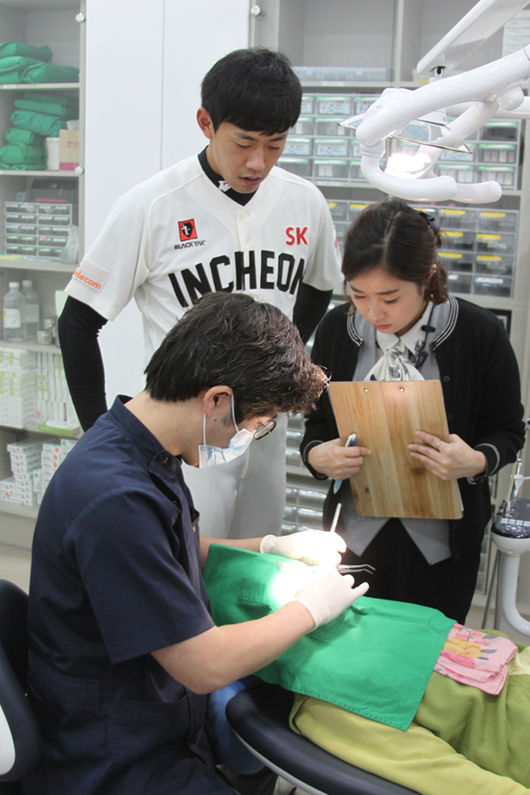 SK 와이번스(대표이사 임원일)의 김광현, 나주환, 이명기 선수는 10일(목) 인천 서구에 위치한 정플란트치과의원(병원장 강혁권)을 방문, 양사 공동 사회공헌 캠페인인 ‘정(情)드림 프로그램’을 통해 무료 치과시술을 받게 된 환자분들을 격려했다.