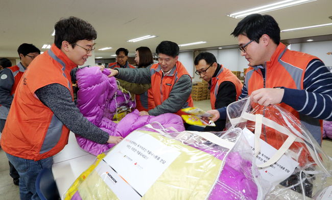 한국타이어의 사내 봉사단인 ‘동그라미 봉사단’이 추운 겨울을 맞아 독거노인들의 따뜻한 겨울나기를 위해 이불을 전달했다.