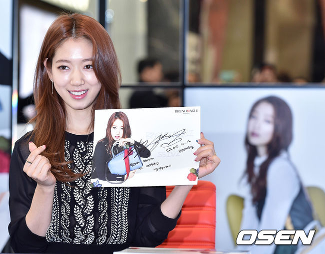 이태리 패션 브랜드 브루노말리(BRUNOMAGLI)와 콜라보레이션 제품인 '스틸레 씬즈(STILE SSINZ)' 출시를 기념하여 배우 박신혜가 12일 오후 롯데백화점 부산 본점에서 팬사인회를 진행했다.