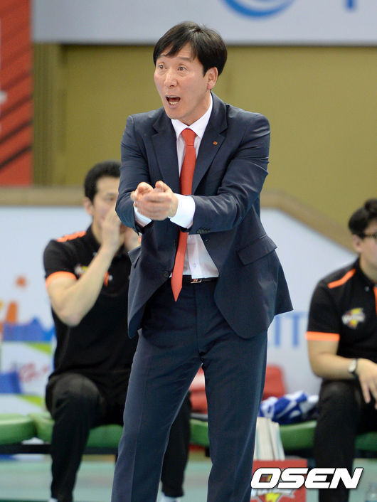 3세트 한국전력 신영철 감독이 선수들에게 작전을 지시하고 있다.