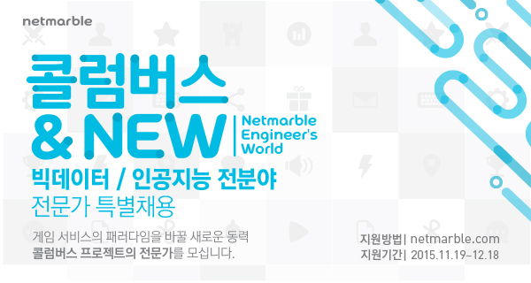 [OSEN=신연재 인턴기자] 넷마블이 자사의 새 게임서비스 엔진 ‘콜럼버스’ 프로젝트를 위한 채용설명회를 진행한다.