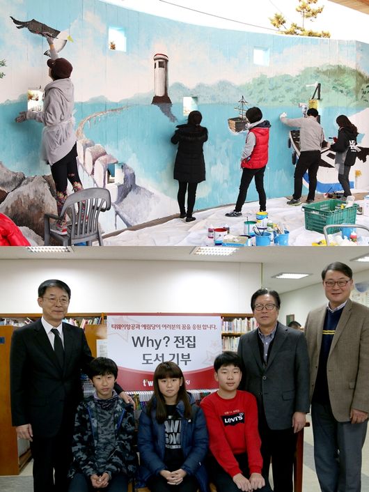 티웨이항공이 어촌 마을에 벽화를 그려 주며 연말 나눔 문화에 동참했다.