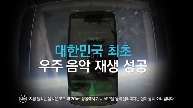 음악서비스 지니는 수증기도 없고 구름도 없는 성층권에서 스마트폰에 저장된 음원이 재생되는 스페이스지니 실험영상과 동탄고 학생들과 함께 진행한 실험 과정을 담은 영상을 공개했다. 아울러 우주음원재생 성공기념 이벤트도 18일까지 진행한다.