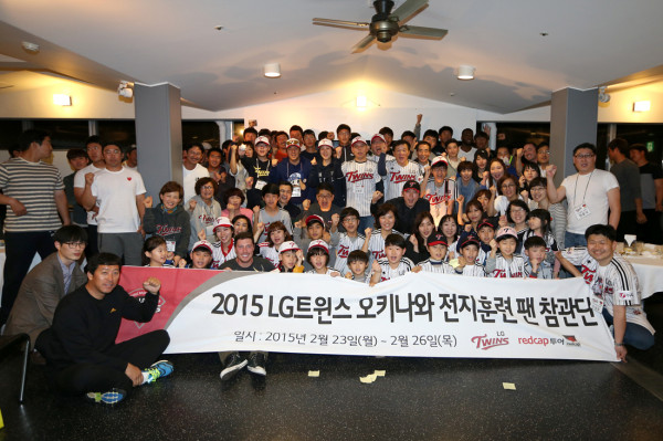 전지훈련 팬 참관단은 2006년부터 진행한 이벤트로 팬들로부터 큰 호응을 얻고 있다. 이번 2015시즌 전지훈련 참관단은 내년 2월 22일부터 25일까지 3박4일 일정으로 LG 오키나와 전지 훈련지를 방문해 한화 이글스, 넥센 히어로즈와의 연습경기 관람, 선수단과 함께하는 식사시간, 오키나와 주요 관광지 여행 등을 즐길 수 있다.