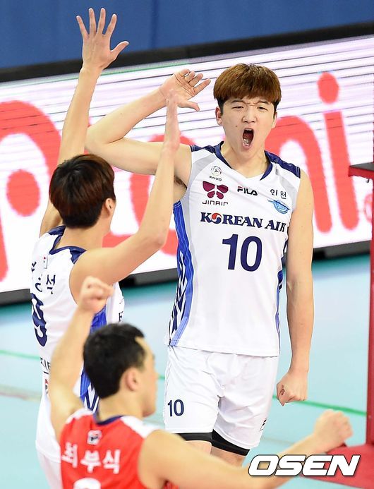 대한항공은 17일 인천 계양체육관에서 열린 '2015-2016 NH농협 프로배구' 남자부 한국전력 빅스톰과의 경기에서 세트스코어 3-1(25-22, 25-20, 21-25, 25-16)로 승리했다. 대한항공(11승6패)는 3연승을 달리며 승점 33으로 단숨에 4위에서 2위로 도약했다.