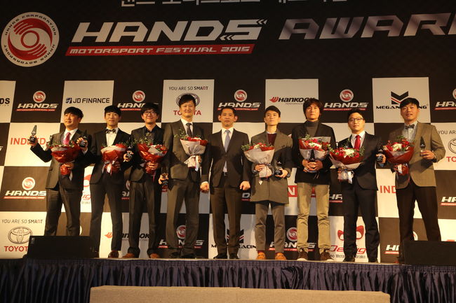 국내 1위 자동차 알루미늄 휠 제조사인 ‘핸즈코퍼레이션’은 17일, 서울 양재동 더케이 호텔 서울 크리스탈볼룸에서 ‘핸즈 모터스포츠 페스티벌 2015 어워즈’를 갖고 86 및 아베오 원 메이크 레이스 시상과 더불어 2016년 계획을 발표했다.