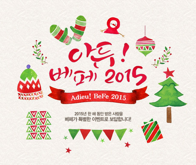 한편, 온라인에서도 아듀 베페 이벤트가 절찬리에 진행 중이다. 베페 홈페이지에서는 크리스마스트리 장식을 클릭하면 경품을 증정하는 '베페 산타, 선물을 부탁해!'와 아듀 베페 2015 이벤트 소식을 SNS로 스크랩하는 'SNS 소식공유' 이벤트를 실시하고 있다. 온라인 아듀 베페 이벤트는 오는 31일까지 진행되며, 당첨자는 내달 7일과 8일에 베페 홈페이지를 통해 발표한다. /letmeout@osen.co.kr