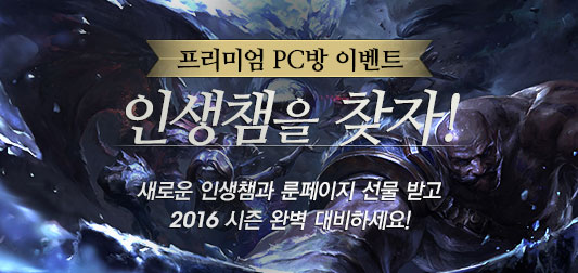 이번 이벤트는 본격적인 2016시즌을 앞두고 플레이어가 새로운 챔피언을 시도해 봄으로써 본인에게 꼭 맞는 챔피언(인생챔)을 찾고 더욱 다채로운 게임 경험을 제공하기 위해 준비됐다.