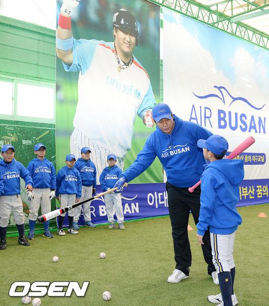 에어부산 홍보대사로 활동 중인 이대호는 18일 부산 사하구 괴정1동 부산베이스볼클리닉에서 '이대호와 함께하는 에어부산 꿈의 야구교실'을 진행했다. 이 행사는 에어부산과 한국인 선수 최초로 일본시리즈 MVP에 선정된 이대호가 손을 맞잡고 부산지역 야구 꿈나무들을 위해 마련했다.