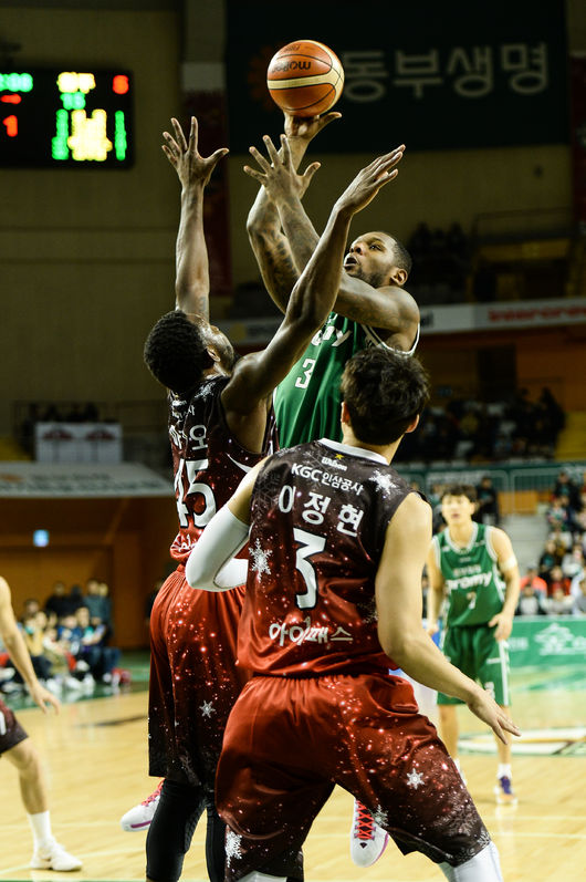하지만 KGC도 쉽게 물러서지 않았다. 국내 선수들이 적극적으로 리바운드에 가담했다. 여기에 김기윤의 3점포 3방과 이정현과 김민욱의 지원사격으로 33-41로 뒤쫓았다. 동부가 45-35로 앞선 채 전반을 마감했다.