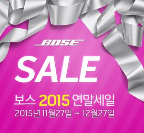 프리미엄 오디오 전문 브랜드 보스는12월 27일까지 공식 온라인 쇼핑몰과 전국 주요 백화점 보스 직영매장에서 '보스 2015 연말세일'을 진행한다. 매년 한 차례 진행되는 연말시즌 맞이 행사로 보스 스테디셀러 제품인 홈오디오를 비롯해 홈시어터, 스피커, 헤드폰 등을 최대 20% 할인된 가격에 판매하거나 사은품을 증정한다. 또한 5.1채널 프리미엄 '라이프스타일 홈시어터', 올인원(앰프+스피커) 홈오디오 '웨이브뮤직시스템', 슬림형 홈시어터 '사운드터치 사운드바' PC스피커 '컴패니언', 획기적인 노이즈캔슬링(소음제거) 효과를 지원하는 'QC 헤드폰', '사운드링크 블루투스 스피커', '사운드터치 무선스피커', '사운드트루' & '사운드스포츠' 헤드폰과 이어폰 등이 행사에 포함된다.