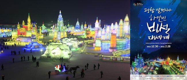 국내에서 열리는 '평창 알펜시아 하얼빈 빙설대세계'에는 하얼빈 시가 인증한 중국 아티스트 300여 명이 직접 눈과 얼음 조각 제작에 참여해 수원화성, 천안문, 콜로세움, 타지마할 등 50여 개의 세계 유명 문화 유산과 구조물을 선보이고, 설상에서의 각종 퍼포먼스와 공연, 체험을 즐길 수 있는 다양한 프로그램이 진행된다.