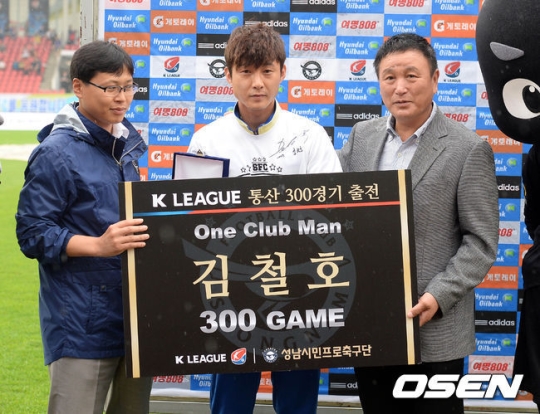 올해 6월에는 300경기 출전 기념패도 받았다. 프로선수로 300경기 출전이 쉬운일이 아니다.K리그 통산 35번째 기록이다. 그런데 김철호는 성남에서만 300경기를 뛰었다. 쉽지 않은 일이다. 당시 성남 구단도 그에게 큰 축하를 건넸다. 오랜시간 함께 했던 고마움이었다. 하지만 김철호는 오히려 구단에 대한 고마움이 크다.
