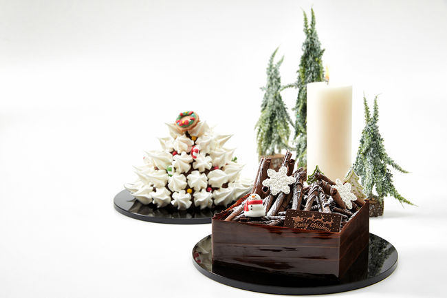 호텔 베이커리에서 직접 디자인하고 제작한 송년 분위기를 업그레이드 할 '데카당스 초코 무스 케이크'와 '크리스마스 트리 머랭 케이크' 2종을 선보인다. '데카당스 초코 무스 케이크'는 밀가루를 사용하지 않고 오직 달걀로만 비스켓과 웨하스를 만들어 프랑스 발로나사의 초콜릿을 입혀 더욱 진한 초콜릿을 느낄 수 있다.