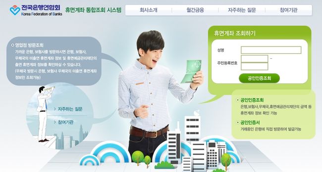 [사진] 휴면계좌 통합조회 시스템 홈페이지.