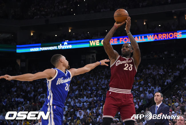 제임스도 2쿼터부터 본격적으로 득점경쟁에 가세했다. 해리슨 반스가 빠진 상황에서 안드레 이궈달라가 ‘르브론 스토퍼’로 투입됐다. 제임스는 전반전 11점을 쏟아내며 42-45 맹추격을 이끌었다.
