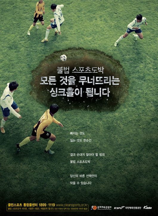 실제로 현재 불법스포츠도박은 사람들의 무관심과 불감증 속에 점점 사회의 암적인 싱크홀이 되고 있는 실정이다. 이번 캠페인은 이렇게 사회 곳곳에 스며들어있는 불법스포츠도박이 건강한 스포츠 문화와 즐거운 레저생활을 헤치고 있다는 경고의 메시지를 강조하고 있다.
