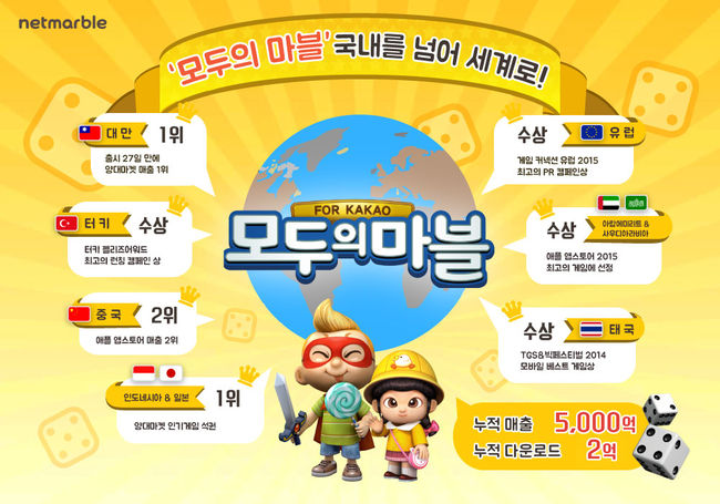 2013년 6월 첫 선을 보인 ‘모두의마블’은 국내에서의 폭발적인 인기를 바탕으로 작년 7월부터 중국, 터키, 대만, 태국, 일본, 인도네시아 등 총 6개 국가에서 서비스를 시작했다. 12월 현재 누적 다운로드 수 2억 건을 돌파하며 명실상부한 글로벌 게임으로 자리잡았다.