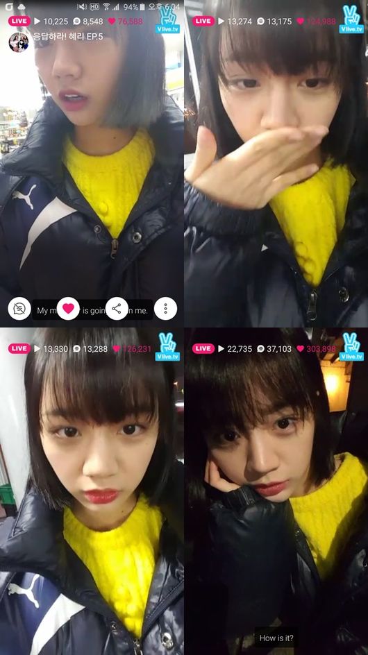 31일 오후 네이버 V앱에서는 '응답하라 혜리'라는 제목으로 혜리의 생방송이 진행됐다.
