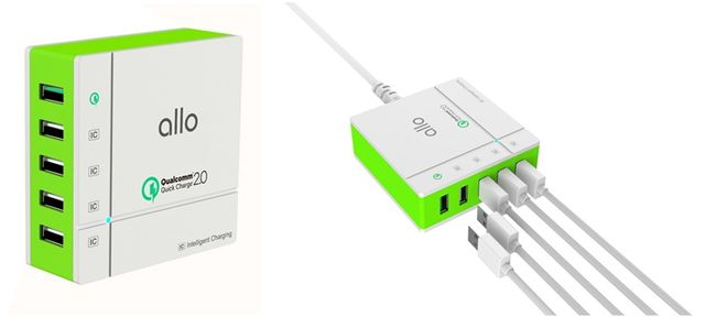 알로 UC401은 5개의 USB 충전 단자를 장착해 각 포트당 최대 2.4A(전 포트 합계 최대 8A)의 전류를 지원해 각종 스마트 기기를 동시에 5대까지 고속으로 충전이 가능하다. 알로 UC401은 저발열 설계와 다중 보호회로를 적용하여 어떠한 상황에서도 값비싼 스마트기기를 안정적으로 충전한다. 특히 '스마트 IC'라는 기능을 모든 USB 포트에 내장해 각종 스마트 기기를 어느 포트에 연결해도 자동적으로 최적화된 전류로 충전시켜 준다.