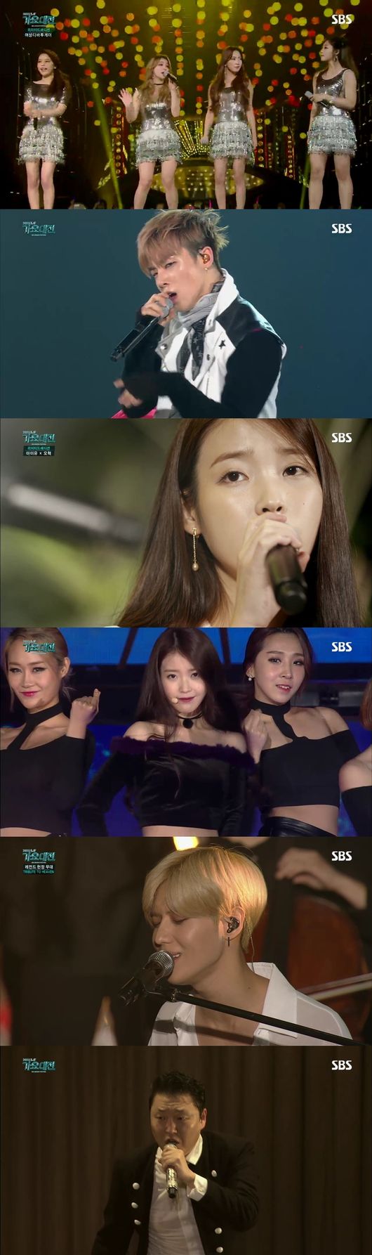 이 외에도 샤이니 종현과 원더걸스 유빈의 '데자부' 콜라보레이션, 엑소와 샤이니의 콜라보레이션 등은 '가요대전'에서만 볼 수 있는 무대였기에 더욱 큰 의미를 가진다. 포미닛, 인피니트, 원더걸스, B1A4, EXID, 2PM, 엑소, 소녀시대 등 K팝을 대표하는 그룹들의 압도적인 무대는 명불허전이었다.