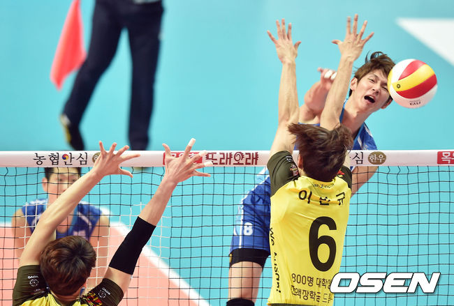 1일 오후 안산 상록수체육관에서 '2015-2016 V-리그' 남자부 OK저축은행과 삼성화재의 경기 2세트 삼성화재 류윤식이 공격을 시도하고 있다.