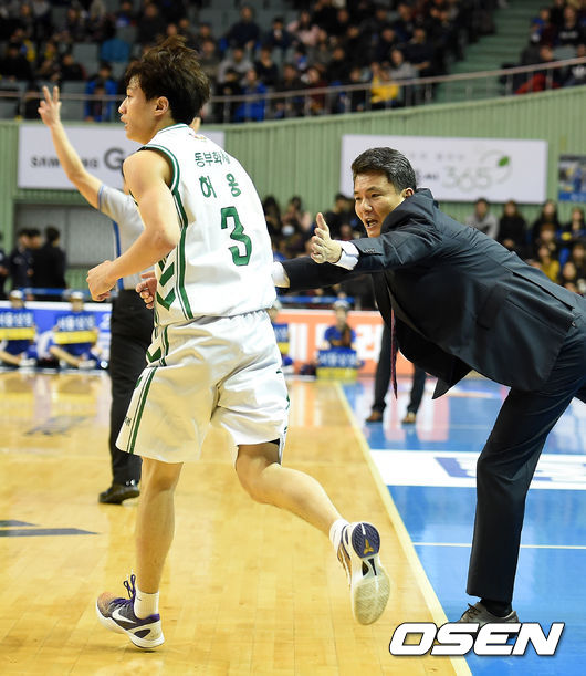 3쿼터 동부 김영만 감독이 허웅의 3점슛에 격려하고 있다./jpnews@osen.co.kr