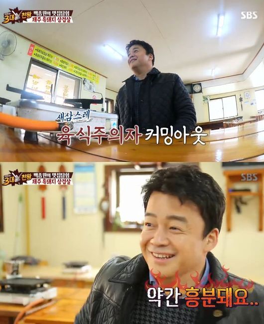 1월 1일 방송된 SBS '백종원의 3대천왕'에는 삼겹살 맛집을 소개했다. 이날 백종원은 제주도 흑돼지 삼겹살집을 찾았고, 거기서 "난 아무래도 육식체질인 것 같다. 고기 냄새만 봐도 흥분된다"고 새삼 커밍아웃을 했다.