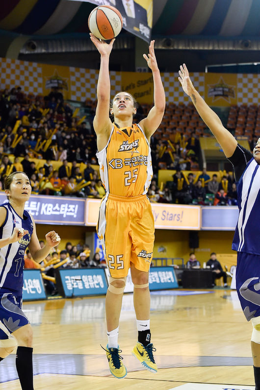 KB스타즈는 3일 청주체육관에서 열린 2015-2016 여자프로농구 4라운드 신한은행과 홈경기에서 59-57로 승리를 거뒀다.