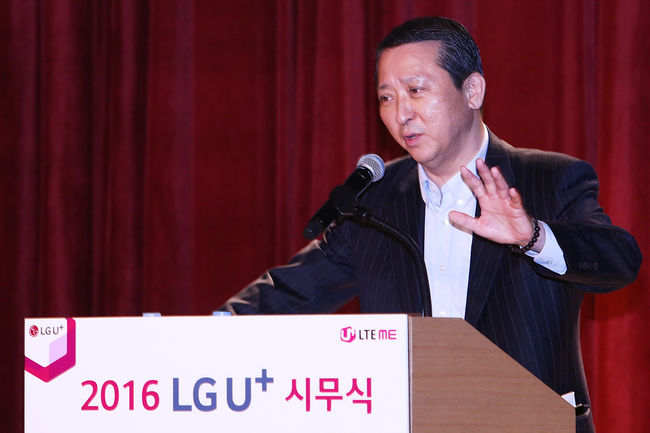 [사진] 권영수 LG유플러스 부회장이 4일 2016년 신년사를 통해 ‘선태사해(蟬蛻蛇解)’의 정신으로 세계 일등 신화를 함께 만들어 가자고 새해 포부를 밝히고 있다. /LG유플러스 제공