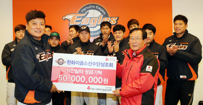 한화 이글스 선수단 상조회는 5일 '사랑의 성금 기증'’을 대전 한화생명이글스파크 내 홍보관에서 실시했다.