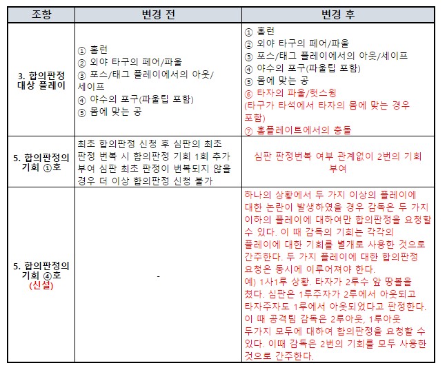 심판합의판정 기회 2번으로 확대 등