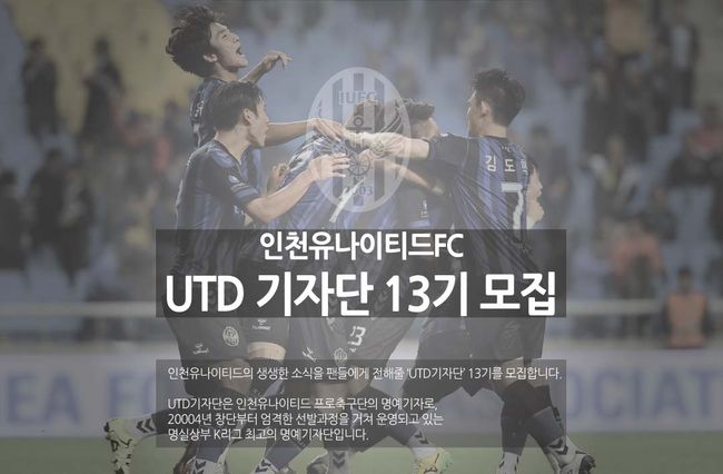 2016년에 활동하게 될 UTD기자단은 8일부터 15일까지 총 8일간 구단 홈페이지(www.incheonutd.com)를 통해 공모한다. 모집 분야는 취재, 사진, 디자인 부문으로 나뉜다.