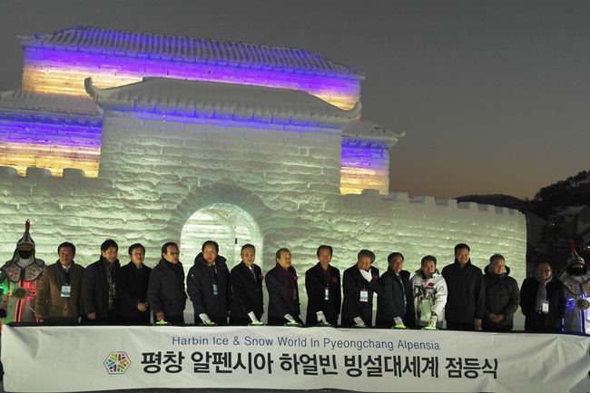 세계 유명 문화유산들과 인물들을 대형 눈과 얼음 구조물로 만날 수 있는 ‘평창 알펜시아 하얼빈 빙설대세계’가 지난 8일 행사 시작을 알리는 개막식을 열었다.