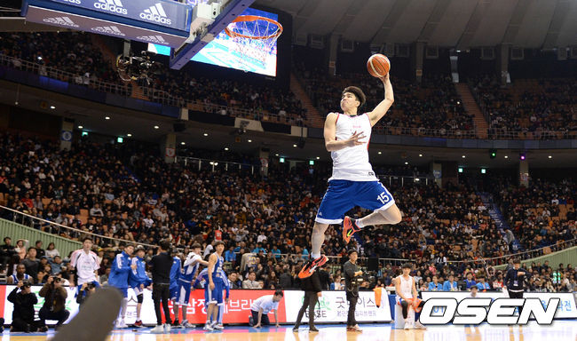 이날 올스타전의 하일라이트는 덩크슛 컨테스트였다. 김종규(LG)가 펄펄 날았다. 이미 예선부터 가장 노력을 많이 한 김종규는 결선서 김선형(SK)과 함께 호흡을 맞춰 덩크슛을 작렬, 심판 전원의 만점을 받고 국내 선수 1위에 올랐다.