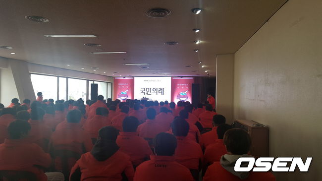 이 자리에서 롯데는 구단 미션-비전 선포식을 가졌고, 2016년 신임 주장으로 강민호를 결정해 발표했다. 롯데 선수단은 15일 애리조나로 스프링캠프를 떠난다. /cleanupp@osen.co.kr