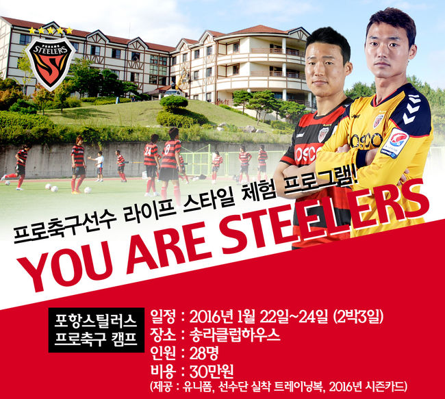 포항스틸러스가 동계 전지훈련을 맞이해 오는 22일부터 2박 3일간 18세 이상의 일반인을 대상으로 하는 프로축구선수 라이프스타일 체험프로그램 'You are STEELERS'를 개최한다.