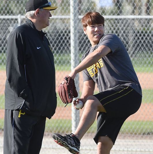 미국 피츠버그 지역 언론인 피츠버그 트리뷴 리뷰의 사진 기자인 크리스토퍼 호너는 12일(한국시간) 자신의 트위터에 훈련 중인 강정호의 사진을 올렸다. 강정호는 현재 플로리다주 브랜든턴에서 진행 중인 팀의 스프링 트레이닝에 참가하고 있다.