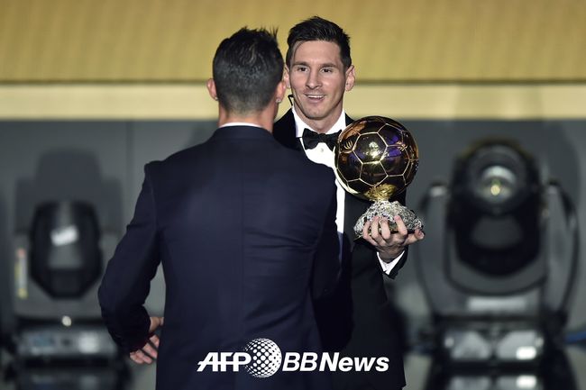 메시는 지난해 61경기서 52골을 기록해 유럽챔피언스리그와 스페인 프리메라리가 우승 등 바르사의 5관왕을 이끌었다. 2013년과 2014년 2년 연속 호날두에게 최고의 자리를 내줬던 메시는 2009~2012년 수상에 이어 역대 최다인 통산 5번째 FIFA 발롱도르를 거머쥐게 됐다.