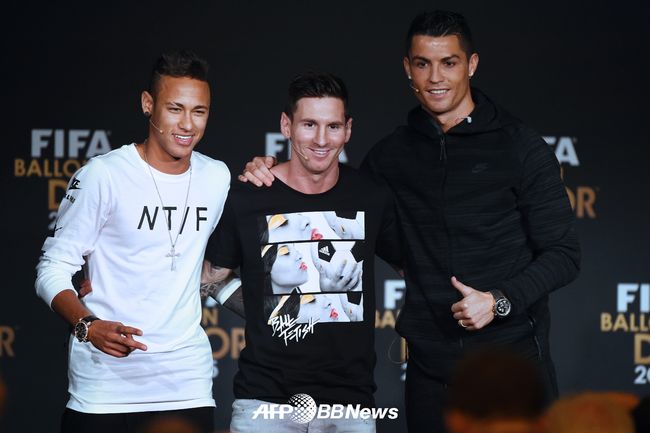 메시는 12일(한국시간) 새벽 스위스 취리히 콩그레스하우스서 열린 2015 국제축구연맹(FIFA) 발롱도르(ballond'or) 시상식서 41.33%의 득표율로 호날두(27.76%)와 팀 동료 네이마르(7.86%)를 크게 따돌리고 3년 만에 통산 5번째(역대 최다) 영예를 안았다.