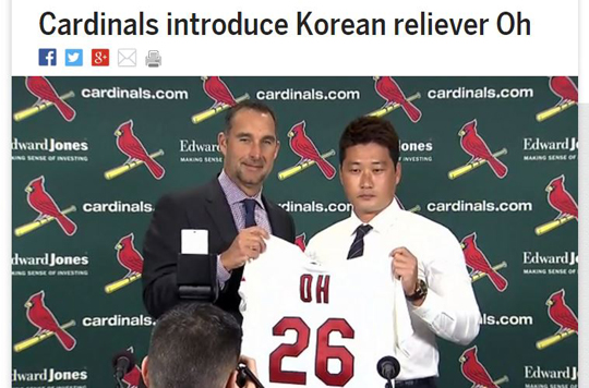 오승환의 메이저리그 진출은 일본 현지에서도 주목받고 있다. 오승환의 세인트루이스 계약 소식은 일본 최대 포털사이트 '야후재팬'의 메이저리그 면 톱 기사를 차지하고 있다. 야구전문매체 '풀카운트'는 12일 "오승환은 셋업맨의 역할을 기대받고 있다. 메이저리그에서 새로운 출발을 하게 된 그에 대한 기대가 크다"고 전했다.