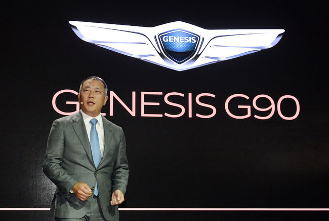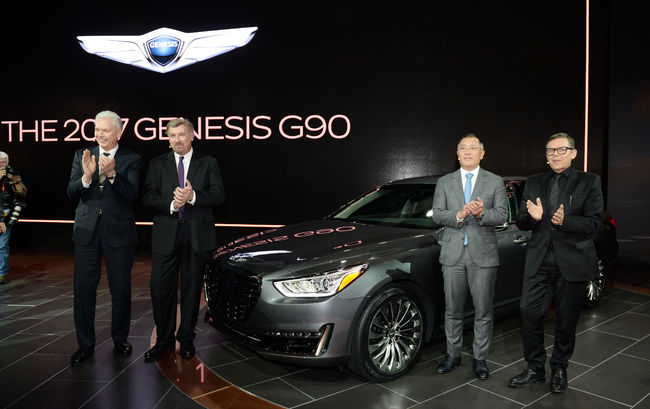 글로벌 브랜드 제네시스의 첫 신차 ‘G90’는 지난 12월 국내에 출시한 ‘EQ900’ 모델로, 한국 울산 공장에서 생산해 연내 미국 시장에 본격적으로 판매될 예정이다.