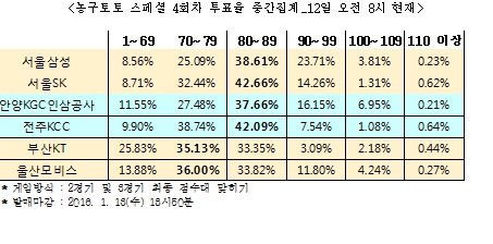 KBL 3경기 대상 농구토토 스페셜 4회차 투표율 중간집계 결과