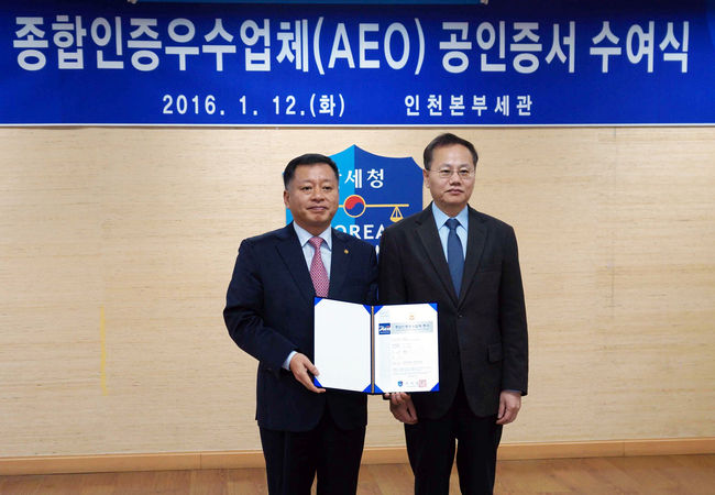 지난 12일 인천본부세관에서 열린 2015년 제 4회 종합인증우수업체 공인증서 수여식에는 쌍용자동차 구매1담당 박경원 상무가 참석해 차두삼 인천본부세관장으로부터 수출입 부문 AEO공인증서를 수여받았다.