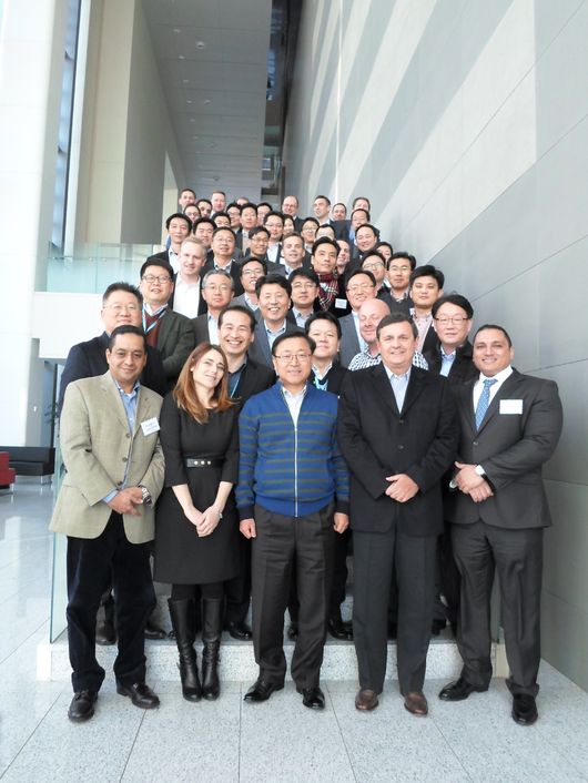 [사진] 삼성전자가 지난 11일과 12일 이틀간 삼성전자 서천 인재개발원에서 개최한 '2016년 글로벌 프린팅 컨퍼런스'에서 프린팅솔루션사업부 송성원 전무(맨 앞줄 가운데) 등 주요 임원진과 해외 프린팅 총괄 책임자, 그리고 현지 주재원 등 50여 명이 기념촬영을 하고 있다. /삼성전자 제공