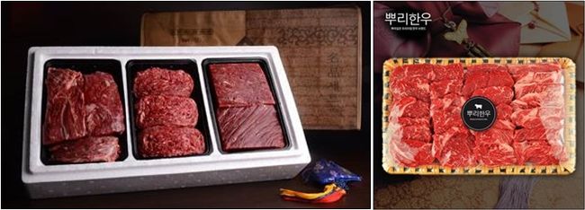 [사진] 장흥한우 선물세트와 뿌리한우 1등급 구이세트 /롯데닷컴 제공