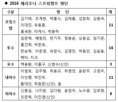 KIA는 오는 16일 미국 애리조나로 출국해 2월 7일(한국시간)까지 스코츠데일 솔트리버필드에서 스프링캠프를 운영한다.
