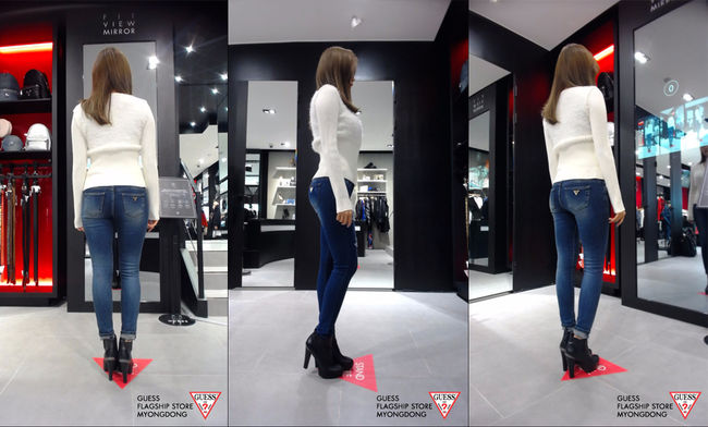 게스 진 명동 직영점에 첫 번째로 설치된 '핏뷰'는 자신이 가장 섹시해 보일 수 있는 최적의 청바지 핏을 찾을 수 있도록 돕는다. /letmeout@osen.co.kr