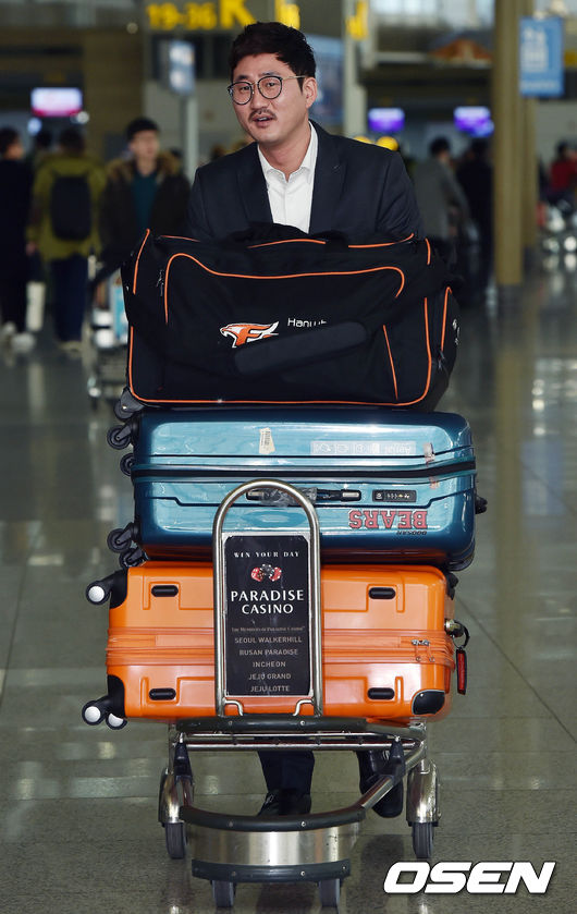 15일 오후 인천 영종도 인천국제공항을 통해 프로야구 구단 한화 이글스가 스프링캠프를 위해 일본 고치로 출국 했다.